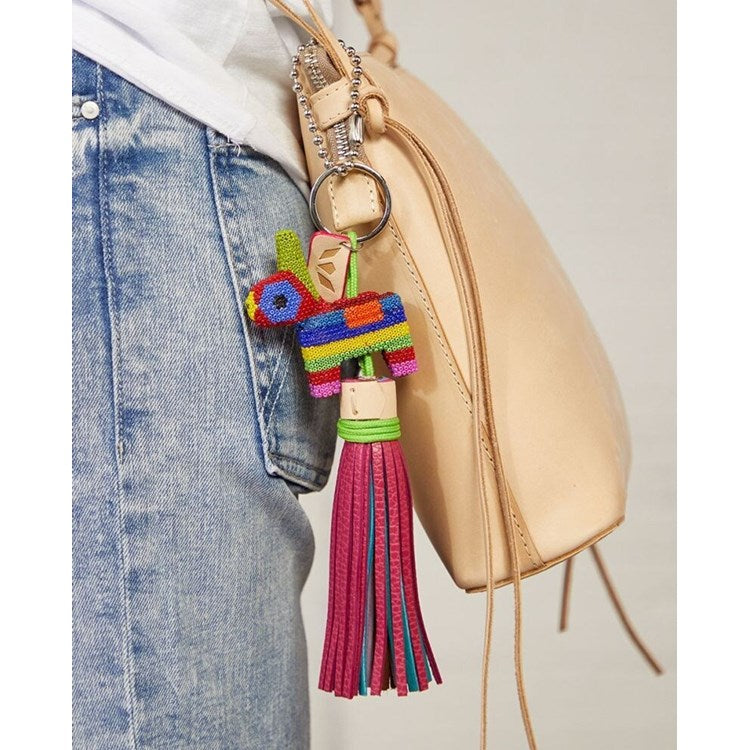 - Hand-beaded piñata donkey with multicolor leather tassel