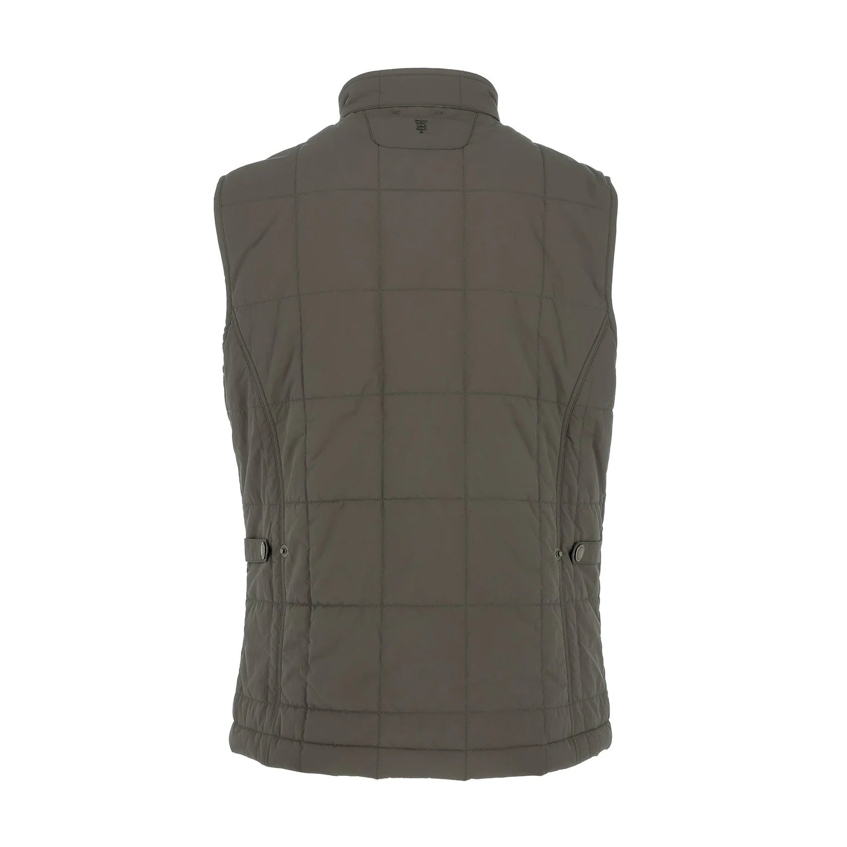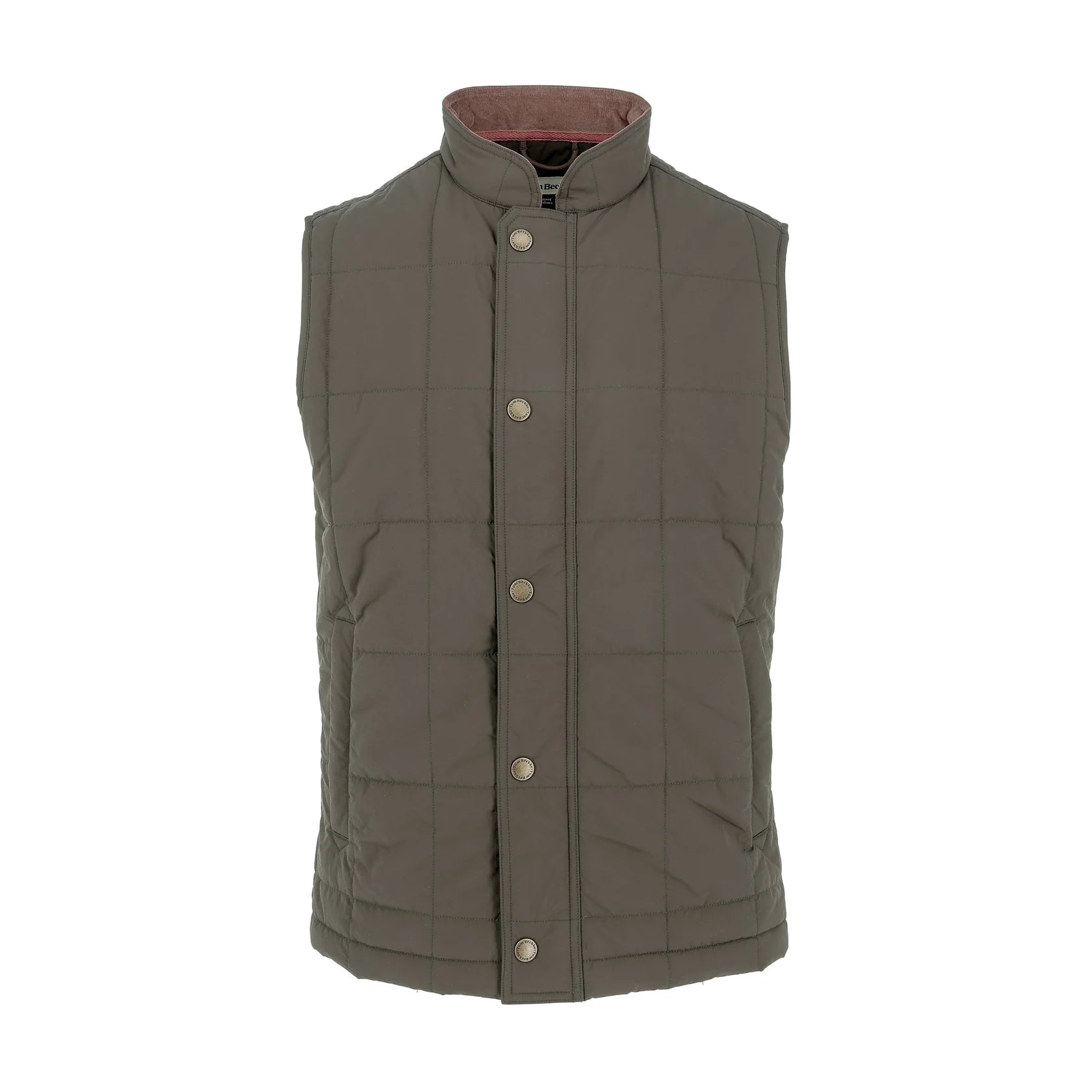 The center front of this men’s quilted vest closes with a dependable antique brass zipper and snap front placket. Adjusting waist tabs provide a comfortable fit in the waist. Two side hand warmer pockets are lined with soft, brushed fabric for comfort and insulation. The 2” standing collar has a soft corduroy lining. Interior poly lining.