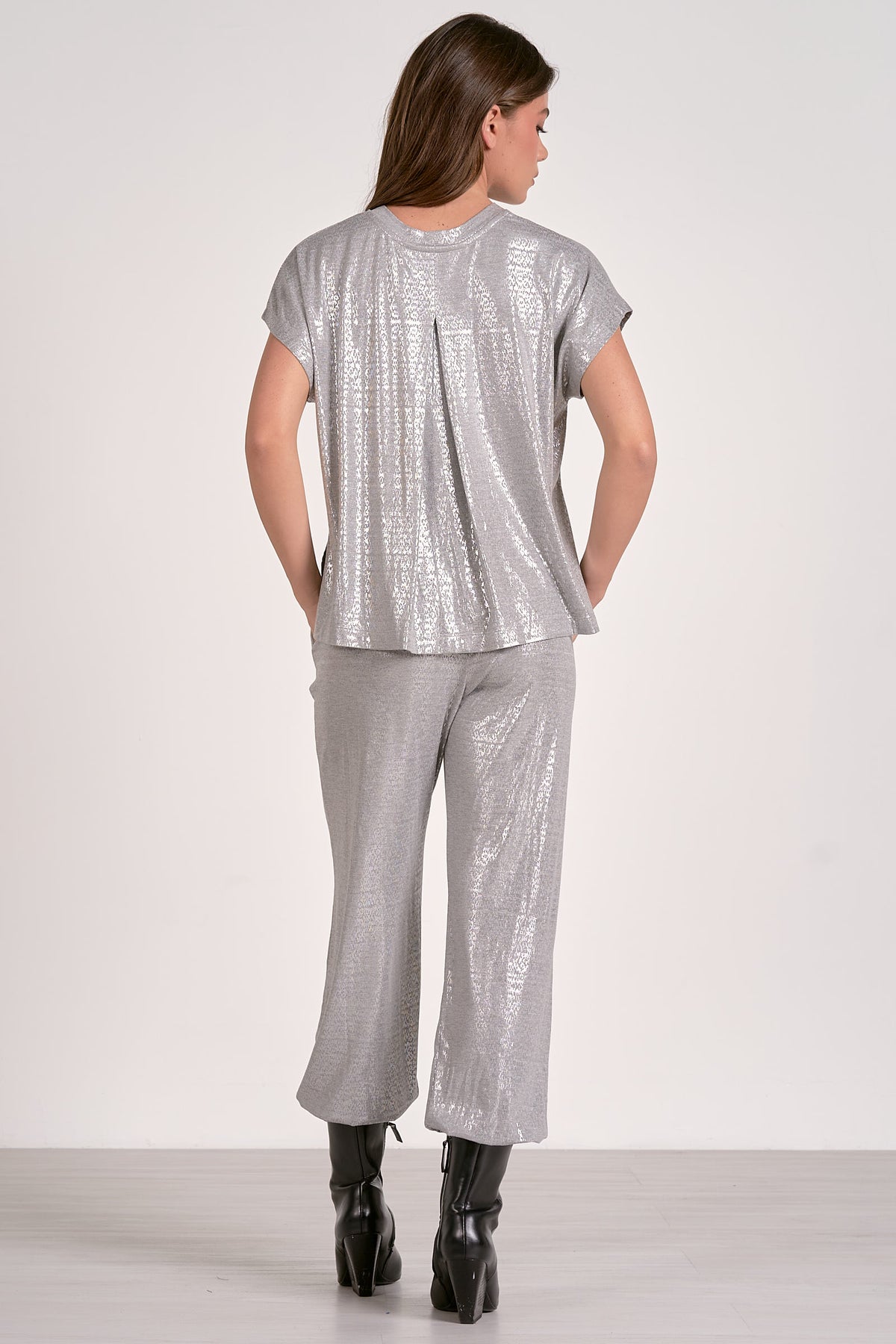 This metallic one piece is sure to brighten up your holiday season. Chic, yet comfortable, this piece will be the new staple in your closet.