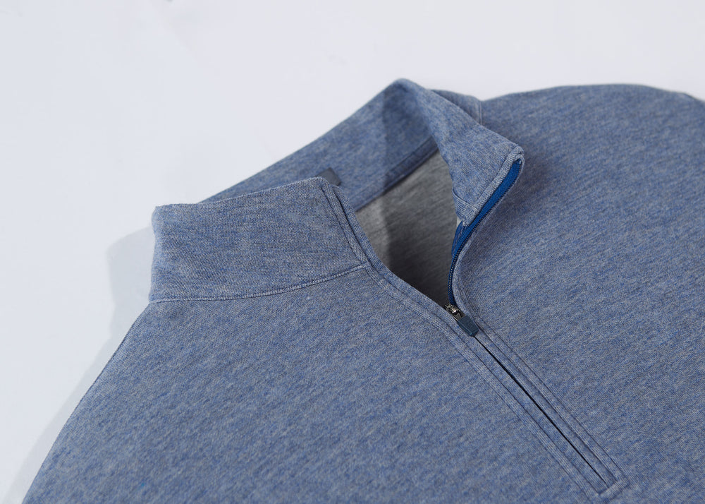 The Wallace Quarter-Zip Pullover features a sleek design with a curiously soft heathered fabric, making it a stylish and versatile layering piece. Its mid-weight fit ensures it complements any wardrobe, offering both comfort and elegance.