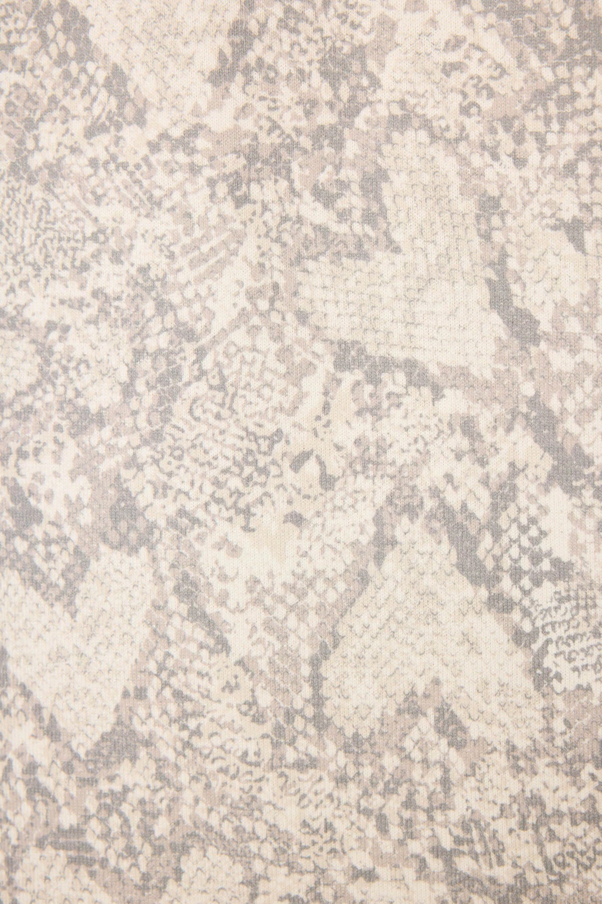 Women’s taupe pajama set in soft peachy jersey with heart snake print featuring a long sleeve crewneck top and matching pants.