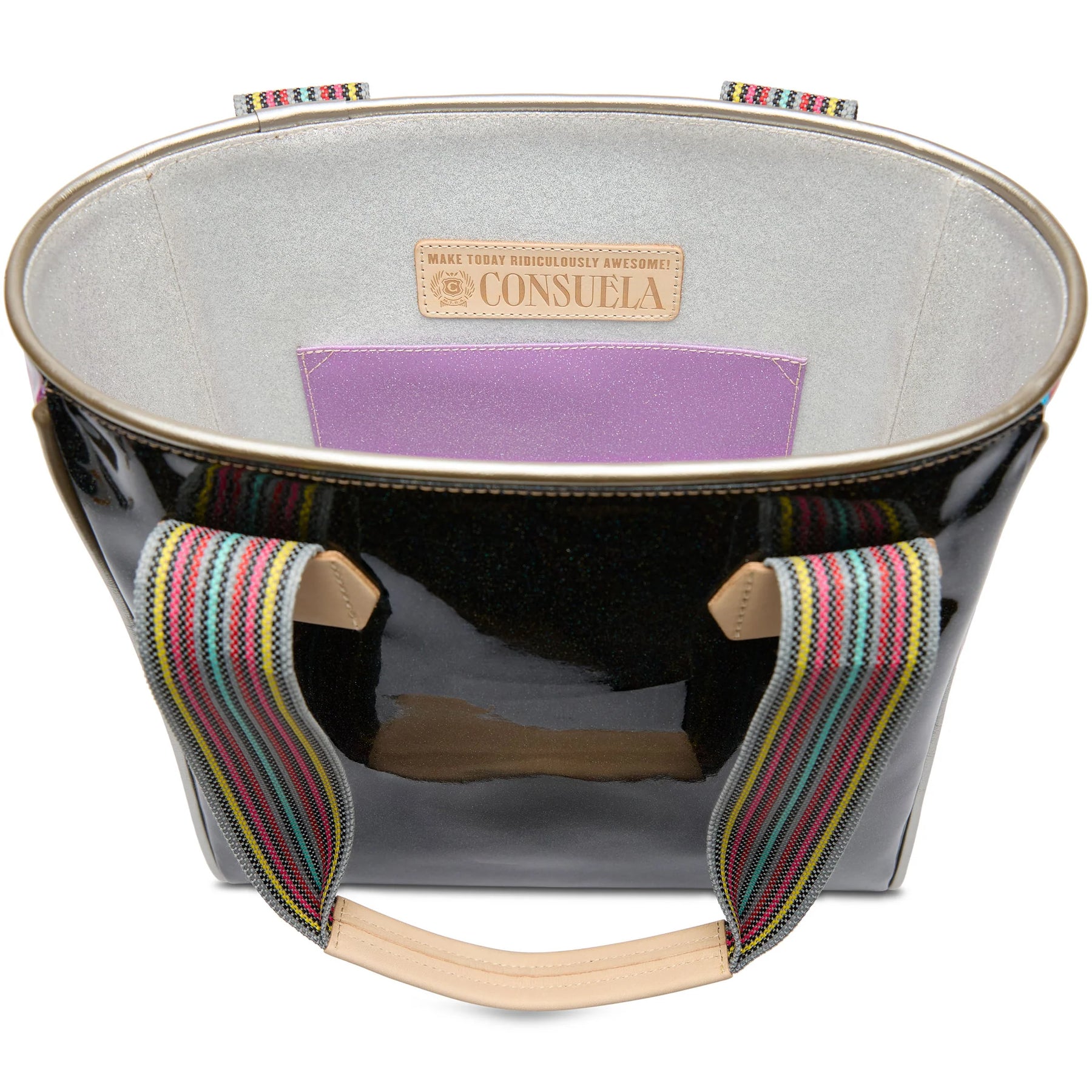 The Classic Tote has been the signature Consuela silhouette since the beginning. This sparkly tote bag holds its shape while carrying all of the essentials in our durable and easy-to-clean ConsuelaClothTM. Spilled coffee? No problem - just a quick wipe and it’s as good as new. You’re ready for anything that comes your way!